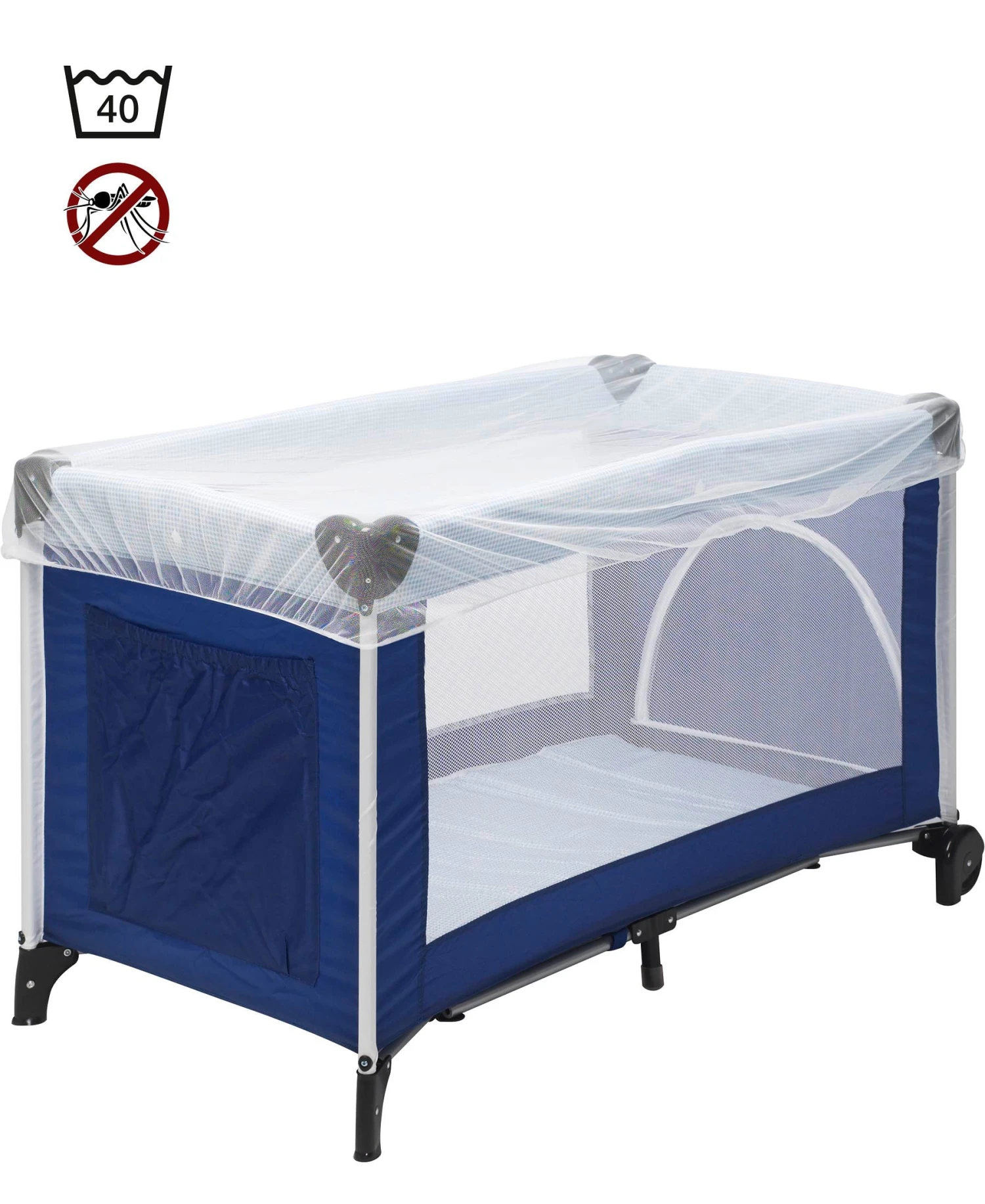 Universal Mückennetz, z.B. für Reisebetten oder Kinderwägen. Außenlaufendes Gummiband für einen sicheren Halt.